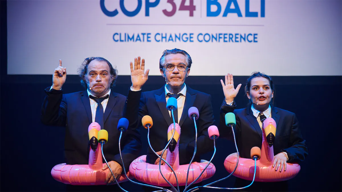 Le climat se dérègle, les ressources s’épuisent, la biodiversité disparaît. La Compagnie Zygomatic s’empare de tout ça… avec humour. Entre chansons, acrobaties et absurdité assumée, le spectacle regarde l’état du monde droit dans les yeux. Une manière de parler d’écologie sans plomber l’ambiance, un peu comme si les Monty Python s’étaient penchés sur le rapport du GIEC.