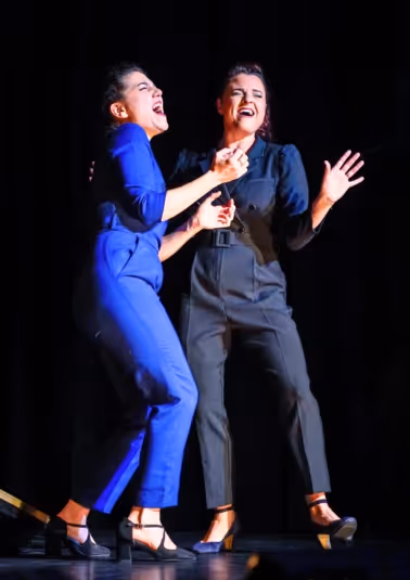 Je n’ai pas vraiment senti le tournant du spectacle, le moment où on passe du petit récital (attendu, mais tout de même chouette) au véritable show. C’est théâtralement bien fichu et assez malin, et scéniquement, même si tout est très simple, les quelques idées de mise en scène fonctionnent vraiment bien ! On se fait complètement balader en tant que spectateurs et je crois qu’on adore ça. Il faut dire que sur scène, les deux comédiennes-chanteuses envoient vraiment : elles tiennent complètement l’ensemble des genres musicaux proposés, et elles ont un véritable swing ! On regretterait presque l’absence d’un piano acoustique et d’une sonorisation plus importante pour que le tout prenne encore une autre ampleur : ce spectacle est un vrai numéro à lui tout seul, qui mériterait d’être poussé encore davantage !