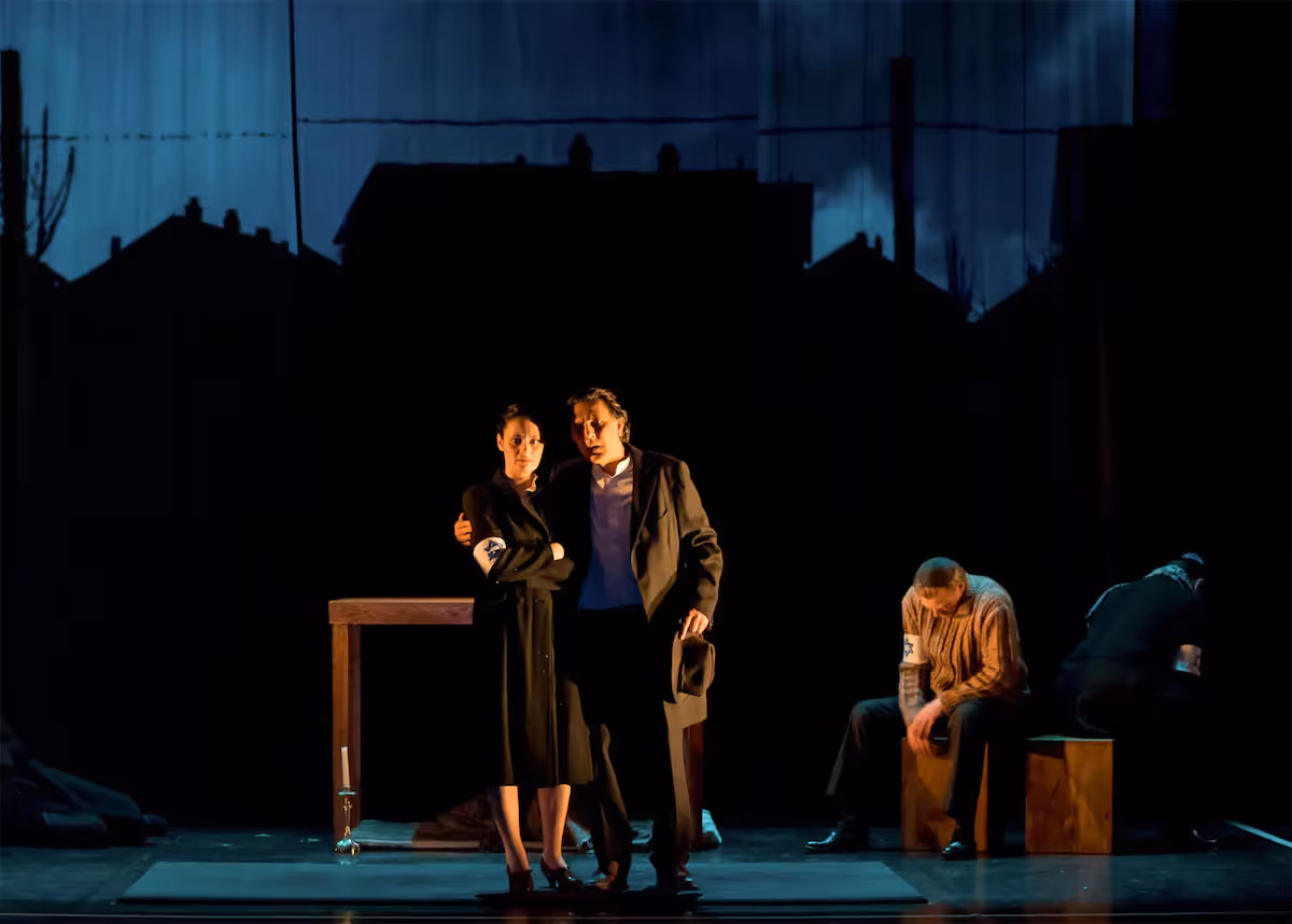 Car il a quand même quelque chose d’étonnant, ce spectacle. Moi qui en ai marre des nazis (au théâtre surtout, mais en général aussi, entendons-nous bien), j’ai trouvé que, pour une fois, on abordait la période sous un angle un peu différent, un peu nouveau. L’histoire est originale, et la scénographie aussi. Le spectacle se déroule dans une ambiance très sombre, et parvient malgré tout à créer de belles atmosphères grâce à des lumières magnifiques et subtiles. C’est une prouesse technique qui devient un véritable partenaire des comédiens, accentuant leur présence, leur influence, leurs émotions.