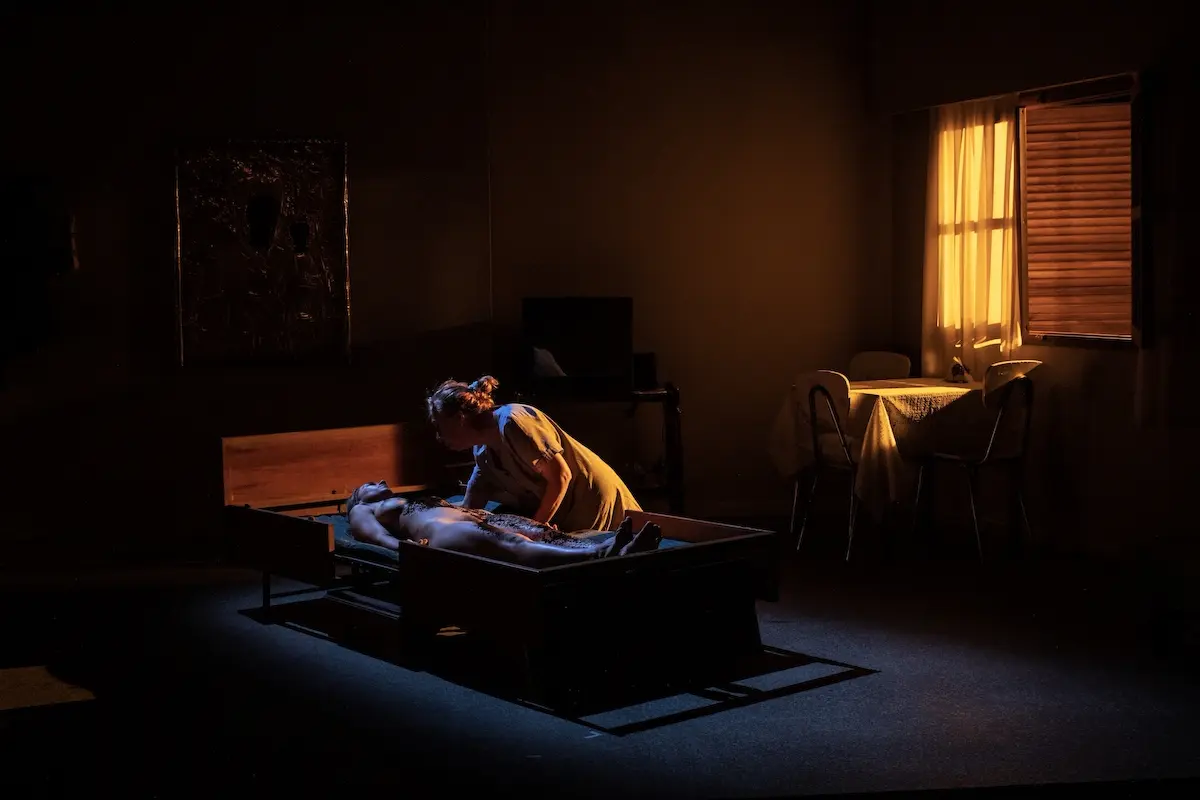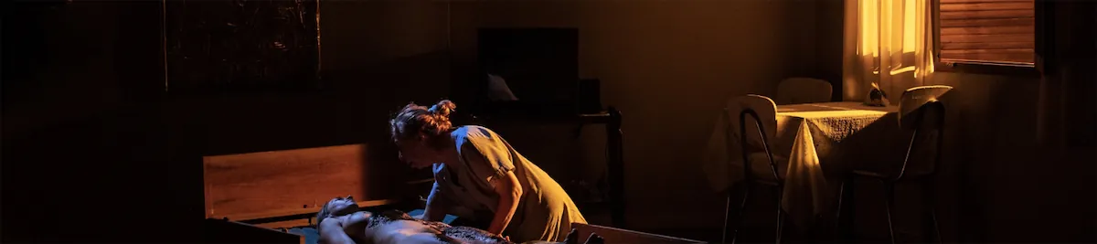 Une famille veille un corps. Tout se fait dans le silence, dans les gestes simples du deuil. Peu à peu, des figures surgissent, la maison se transforme, le quotidien prend une dimension rituelle. Autour de cette disparition, une cérémonie étrange s’installe, faite d’images, de présences et de visions, entre mémoire, mort et vie qui continue.