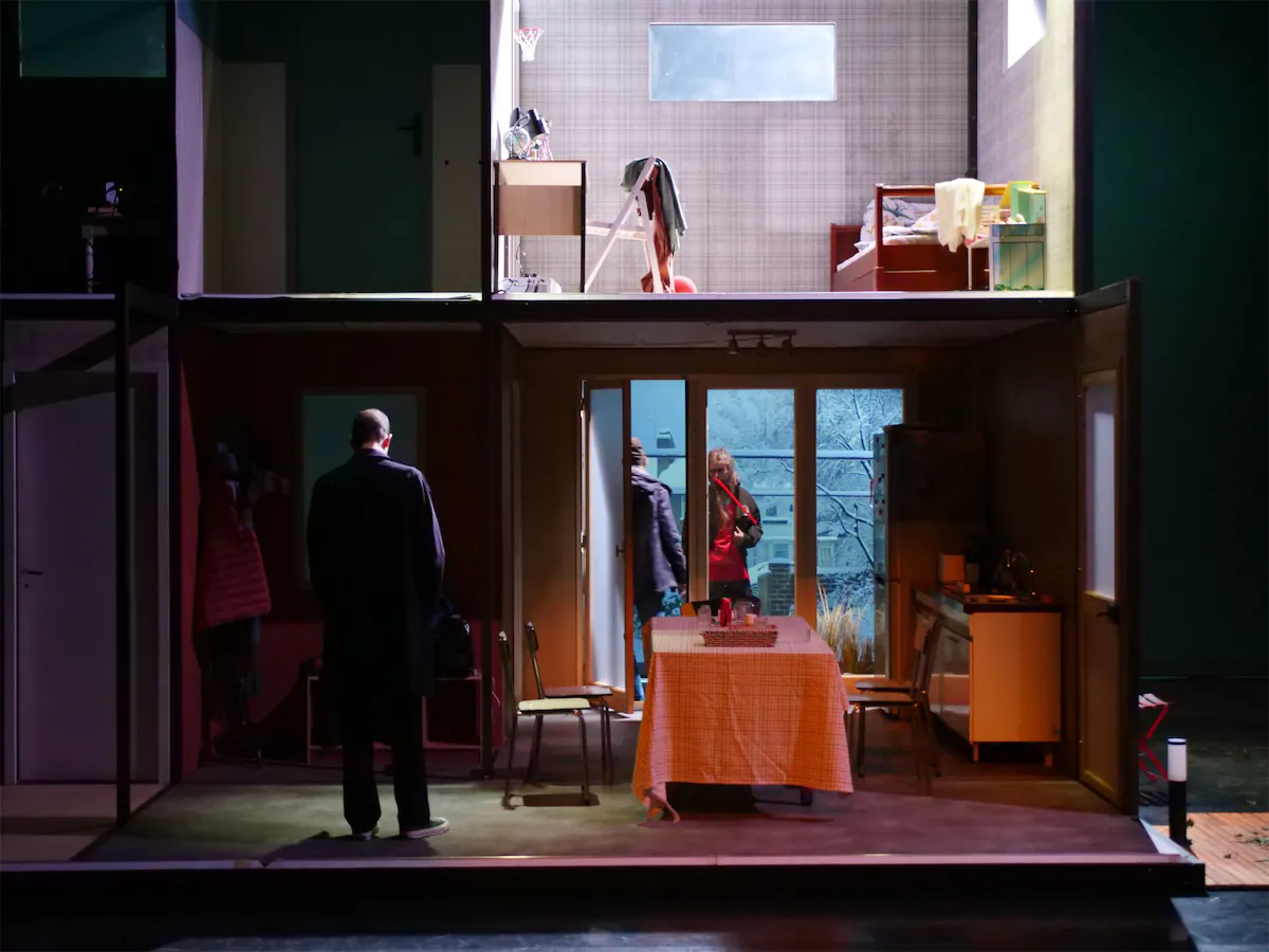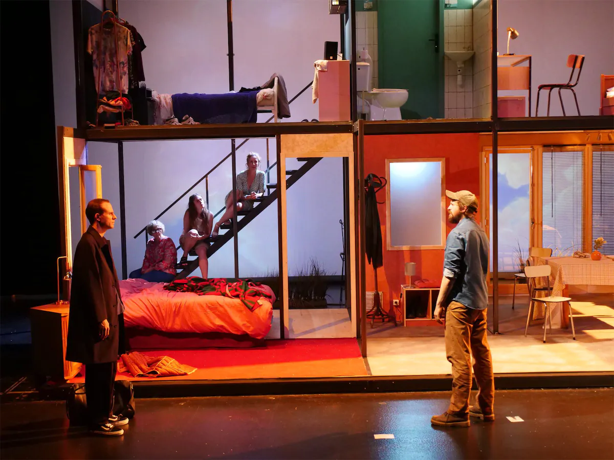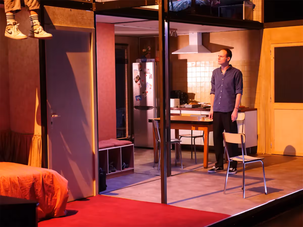 Louis retourne chez les siens et, pour la première fois, la première chose qu'on voit, c'est une famille. Pas d'abord la tension, les sous-entendus, le poids des non-dits – tout ce qu'on projette d'ordinaire sur ce texte. Non, on voit d'abord une famille qui vit et qui soudainement retrouve l'un des leurs. On ne sait pas ce qui va se passer. Guillaume Barbot est parvenu à ôter tout ce qu'on associe habituellement à cette histoire pour nous y faire entrer différemment, plus simplement. Il la raconte presque comme un conte, une histoire qui se suit, qui se déroule de manière linéaire et accessible. Il nous rappelle que, quelque part, quand Louis retrouve sa famille, la vie ne s'est pas encore arrêtée.