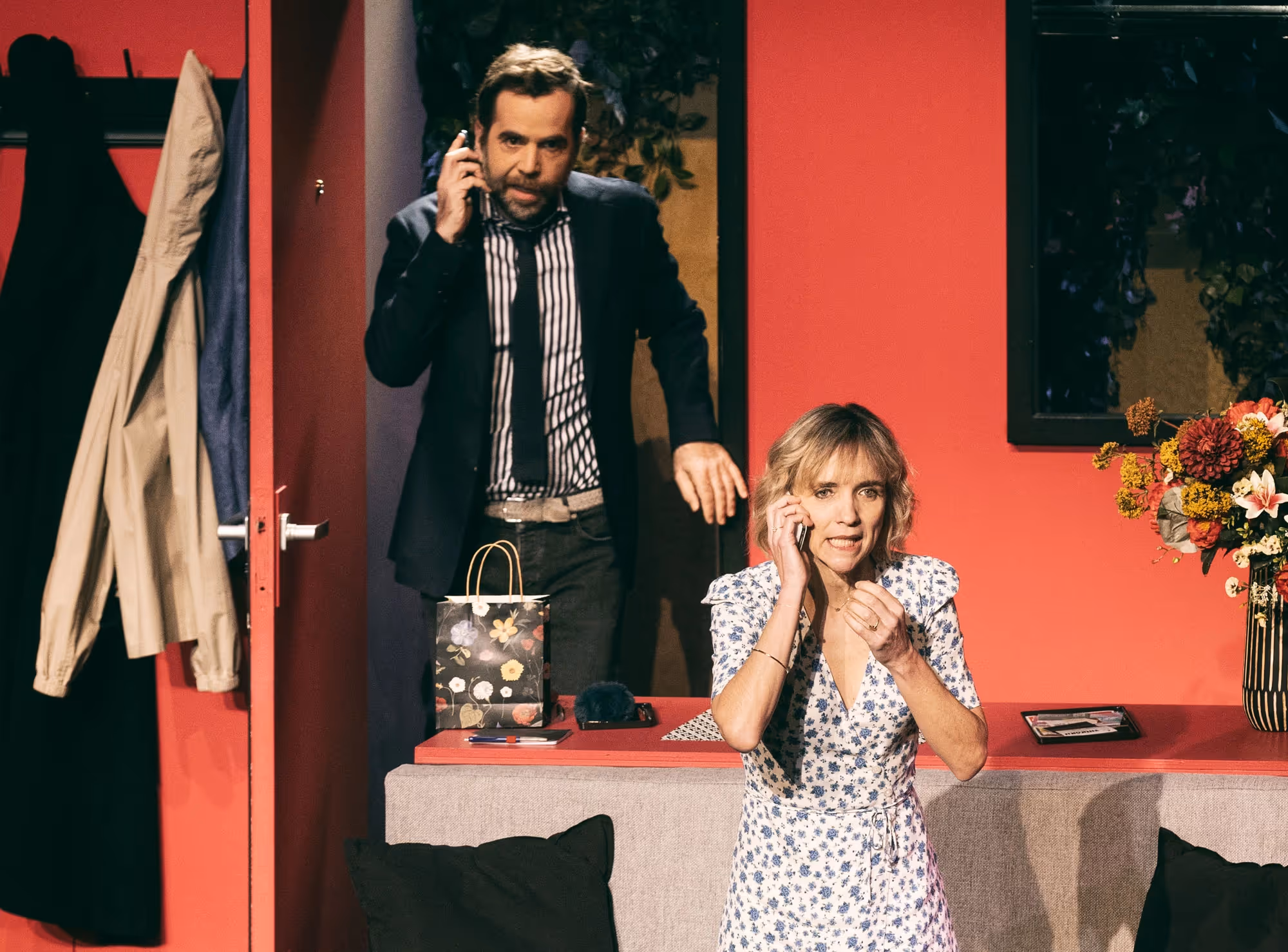 Evidemment, pour réussir le pari, il fallait une mise en scène au cordeau. Avec José Paul et Agnès Boury aux manettes, aucune place pour un quelconque flottement. Les portes claquent, les changements de costume sont parfois de l’ordre du transformisme, le plaisir de spectateur est total. La direction d’acteurs suit cette rigueur, avec une distribution de haute volée. Le dialogue entre José Paul et Sébastien Castro, qui ouvre le spectacle, est une leçon de théâtre ; ce sont deux styles comiques qui s’affrontent, et c’est un régal absolu. Sous ses airs naïfs, Laurence Porteil est une manipulatrice accomplie, transformant le léger agacement du spectateur constatant sa tentative d’adultère en une certaine forme de complicité lorsqu’elle décide de s’amuser de la situation. Agnès Boury, enfin, excelle dans ce personnage décalé qui semble jouer dans une autre pièce. On n’en voit pas souvent, des spectacles aussi réussis, alors si en plus on a plusieurs pièces en une, que demande le peuple ?